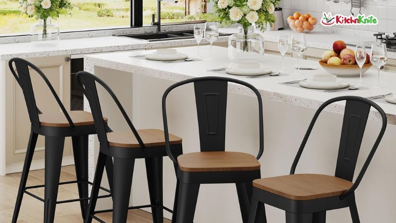 For a set of four metal stools, I was surprised by the quality. The matte black finish looks modern and industrial. The seat measures 14.2″ x 14.2″ noticeably larger than standard stools. When I sat down, the engineered wood seat felt solid, though not as plush as the padded options.